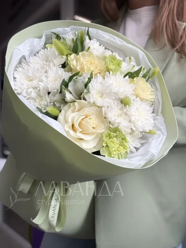 Букет из кустовой хризантемы и роз «Вдохновение»