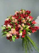 Букет из альстромерий «Ягодный фреш» отличается яркостью и свежестью. Его сочные оттенки создают ощущение праздника и летнего настроения. Элегантные цветы придают композиции изящность и воздушность. Такой букет отлично подойдет для выражения радости и теплых чувств. Он станет прекрасным подарком для близких и дорогих вам людей.