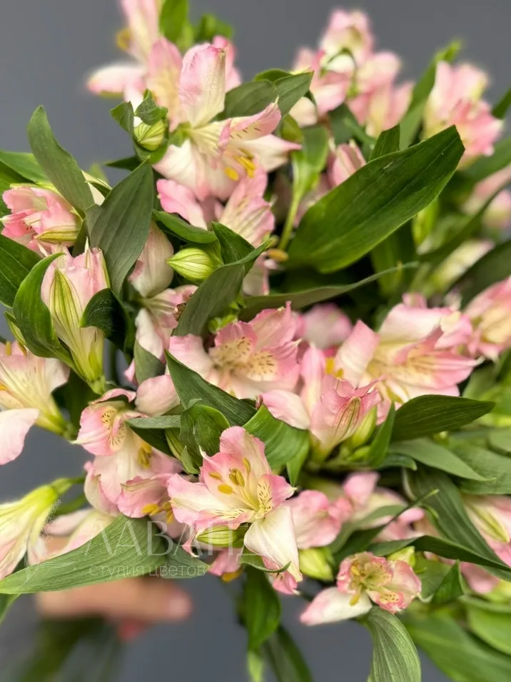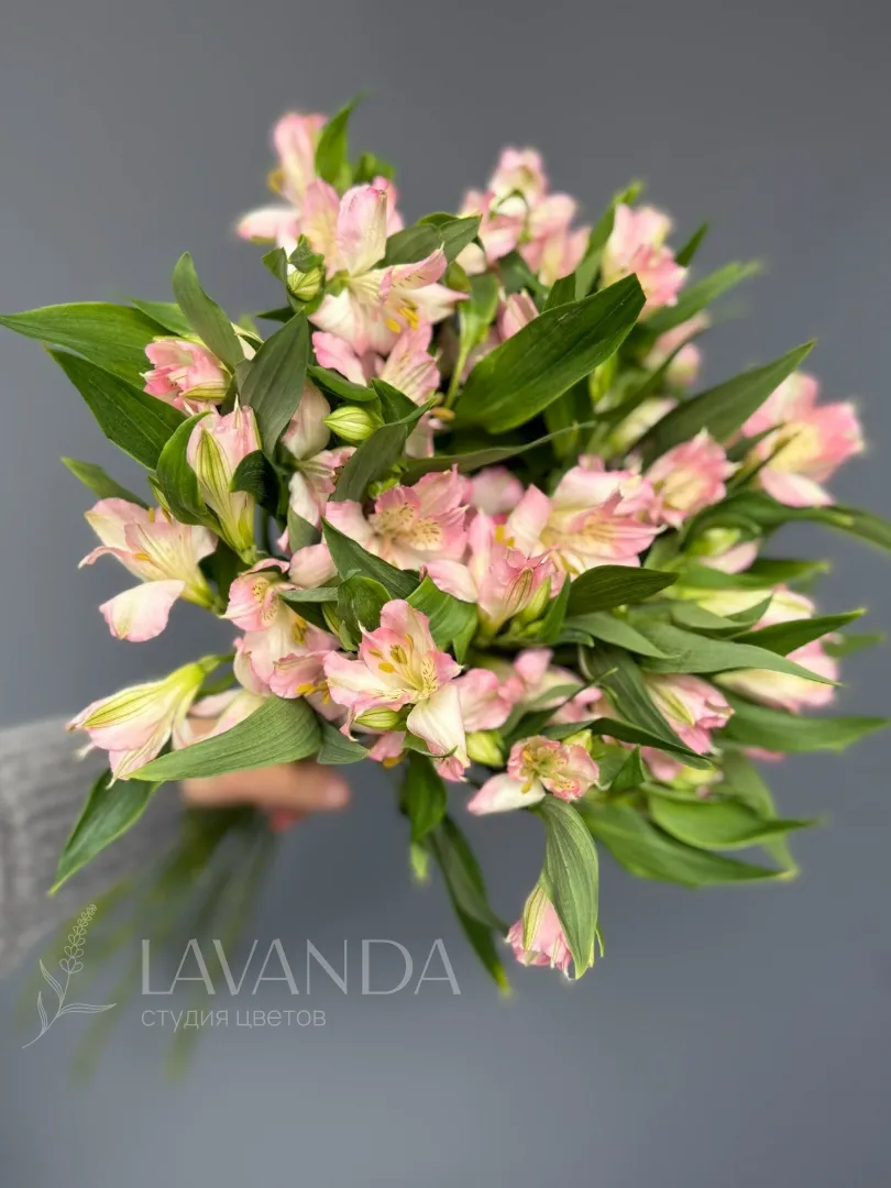 Букет из альстромерии «Колокольчик» представляет собой изысканное сочетание нежных и элегантных цветов. Каждая веточка альстромерии обладает стройным и изящным видом, напоминающим маленькие колокольчики.