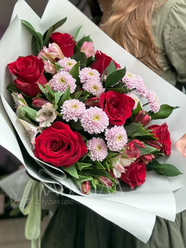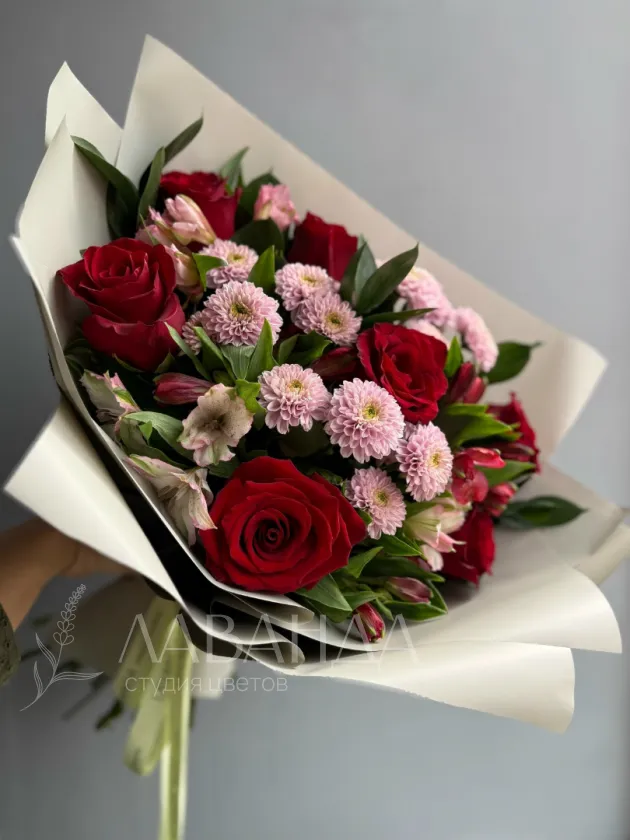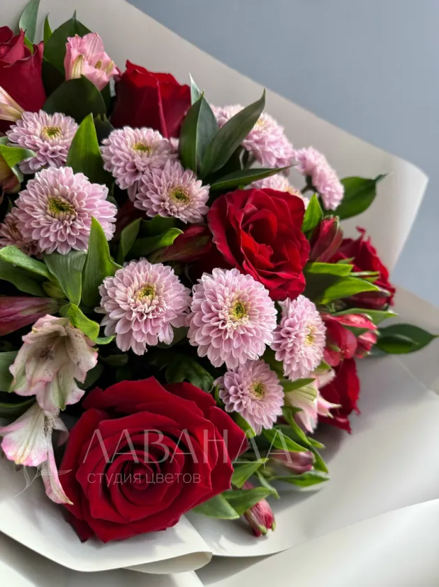 Погрузитесь в атмосферу нежности и гармонии с букетом «Симфония чувств». В его составе изысканные розы из Эквадора, элегантные кустовые хризантемы, яркие альстромерии и капли рускуса, создающие неповторимый букет. Каждый элемент этого сборного букета продуман до мелочей, чтобы подчеркнуть ваши самые искренние чувства. Идеальный подарок для тех, кто ценит красоту и гармонию. Отличное решение для любой особой минуты или просто, чтобы поднять настроение близкому человеку.