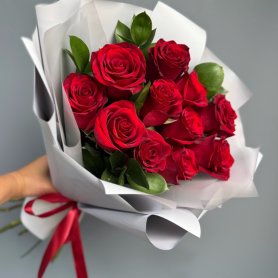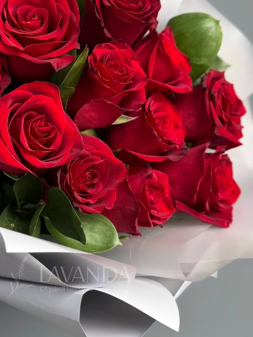Сборный букет из красной розы «Монро» олицетворяет страсть и элегантность.
