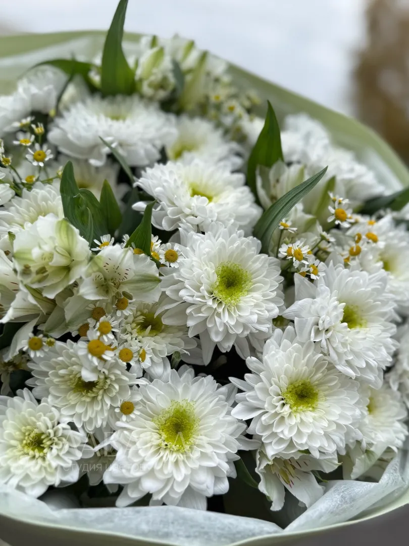 Сборный букет «Конфетти» радует ярким сочетанием кустовой хризантемы, альстромерии и танацетума. Этот насыщенный и праздничный композиционный дуэт идеально подойдет для любого повода. Цветы в букете выглядят свежо и элегантно, создавая атмосферу тепла и радости.