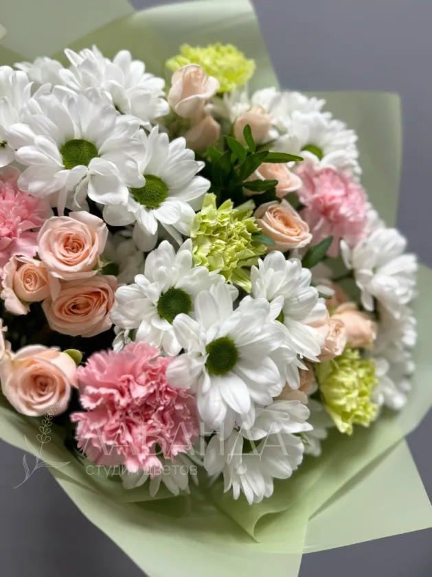 Подарите себе чувство легкости и радости с букетом сборным «Беззаботность». В его составе сочетаются яркие кустовые хризантемы, изысканные диантусы, элегантные кустовые розы и нежные фисташки. Этот букет отлично подчеркнет ваш стиль и настроение. Идеальный выбор для тех, кто ценит красоту и уют в каждом дне.