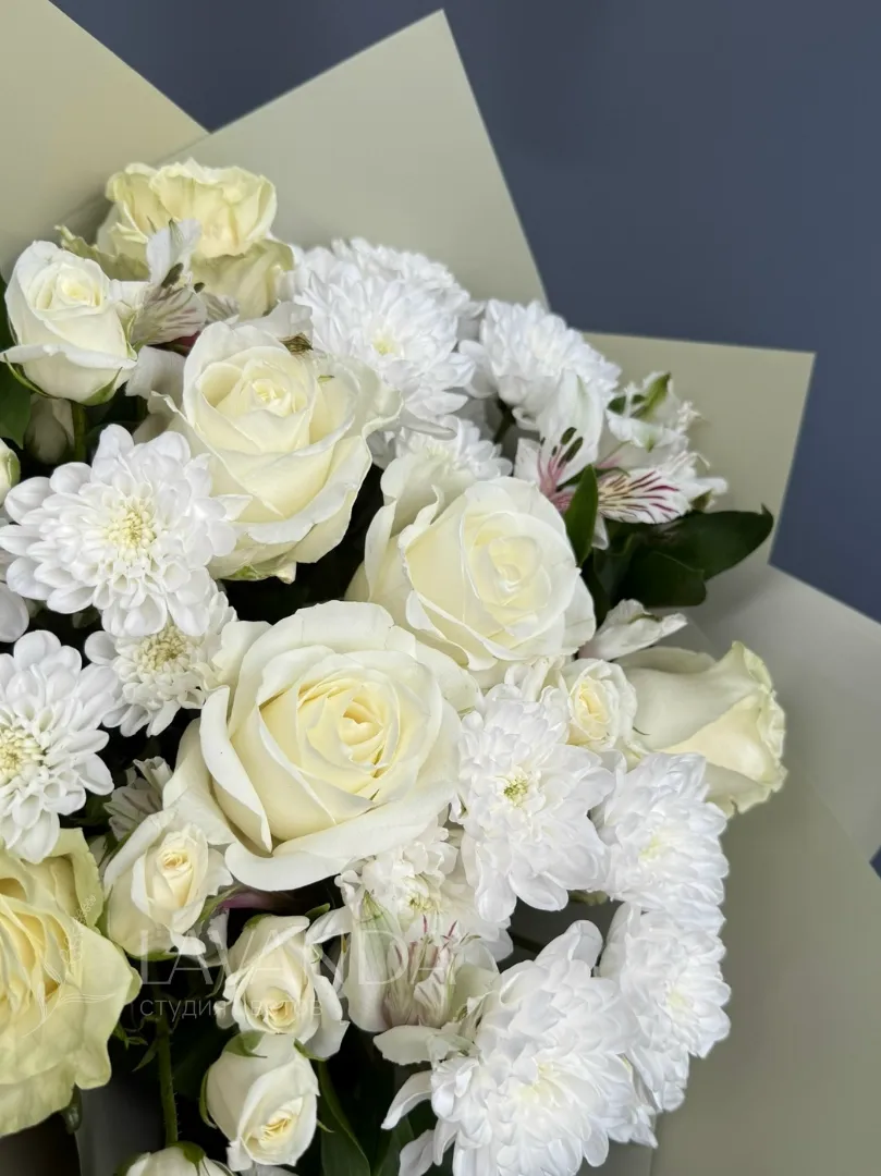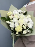 Сборный букет «Белое облако» — это элегантное сочетание изысканных цветов, создающее ощущение легкости и свежести. В его составе представлены прекрасные розы Эквадор, которые добавляют букету роскоши и романтики. Также в композицию включены кустовая хризантема и кустовая роза, придающие объем и текстуру. Альстромерия добавляет нотки утонченной красоты и воздушности. В качестве акцента использован рускус, который подчеркивает нежность и изящество всей композиции. Этот букет станет отличным подарком для тех, кто ценит стиль и аккуратность. м.