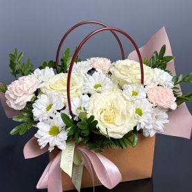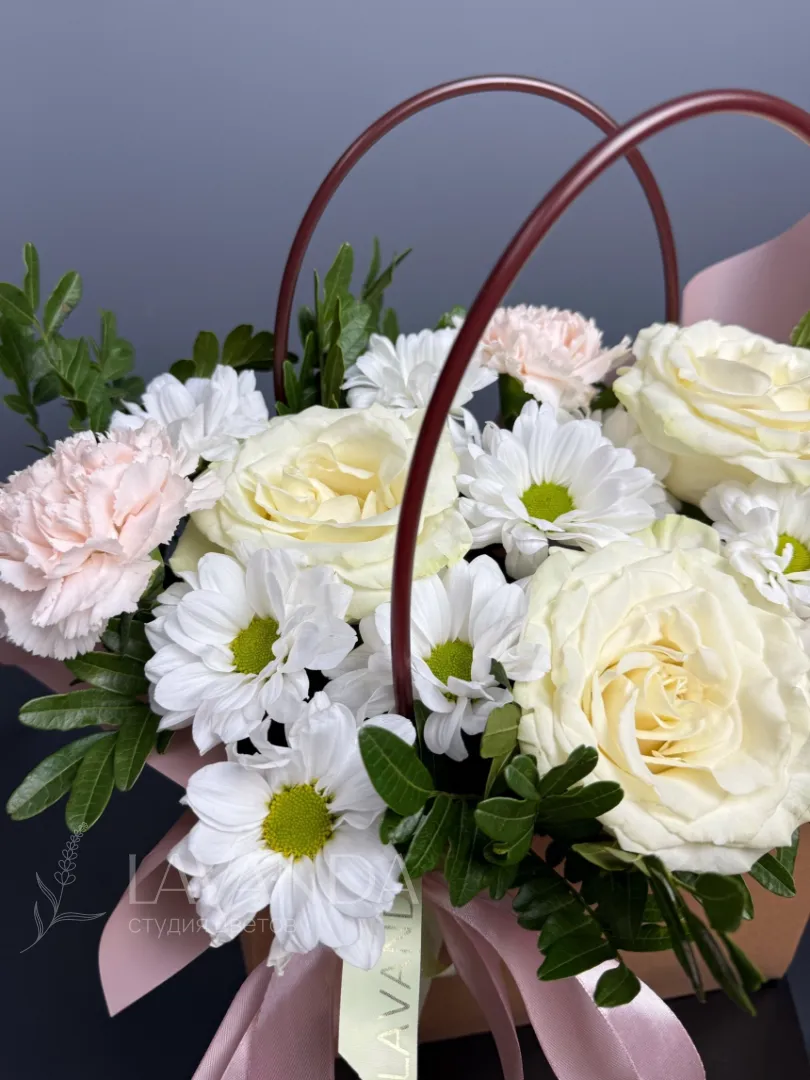 Погрузитесь в атмосферу зимней сказки с композицией «Зимний вечер», которая украшена элегантными розами, создающими ощущение роскоши и уюта. Кустовые хризантемы добавляют объем и свежесть, напоминая о морозных вечерах. В яркую композицию вошли диантусы, которые придают ей изящества и нежности. Акцент на сочетание белых и мягких оттенков создает ощущение чистоты и спокойствия. В центре композиции аккуратно расположена фисташка, добавляющая интересный цветовой акцент и текстуру. Эта изысканная флористическая работа идеально подойдет в качестве подарка или для украшения интерьера. Композиция «Зимний вечер» станет эффектным штрихом в любом пространстве, создавая тепло и уют в холодное время года.