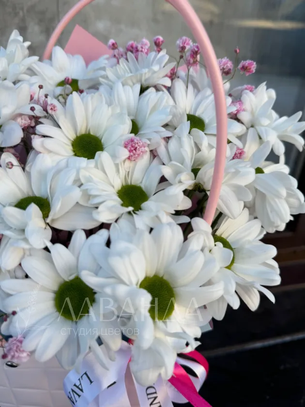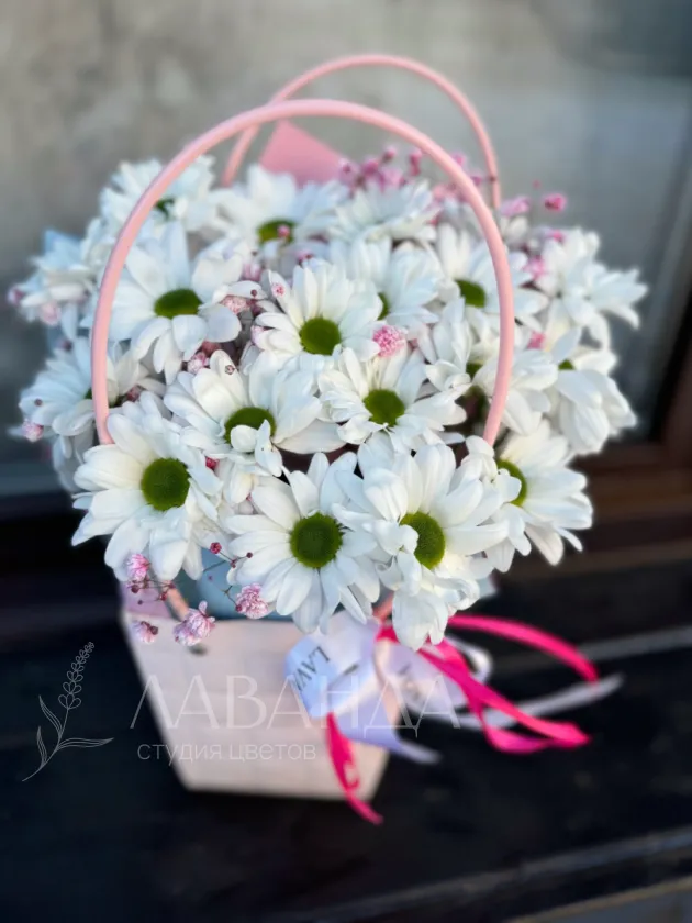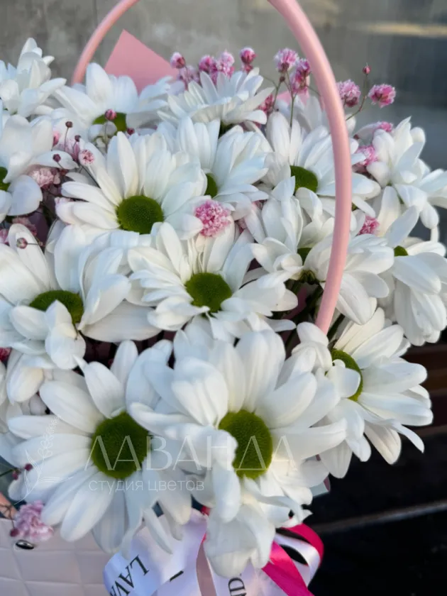 Цветы в корзине из ромашковой хризантемы «Комплимент»