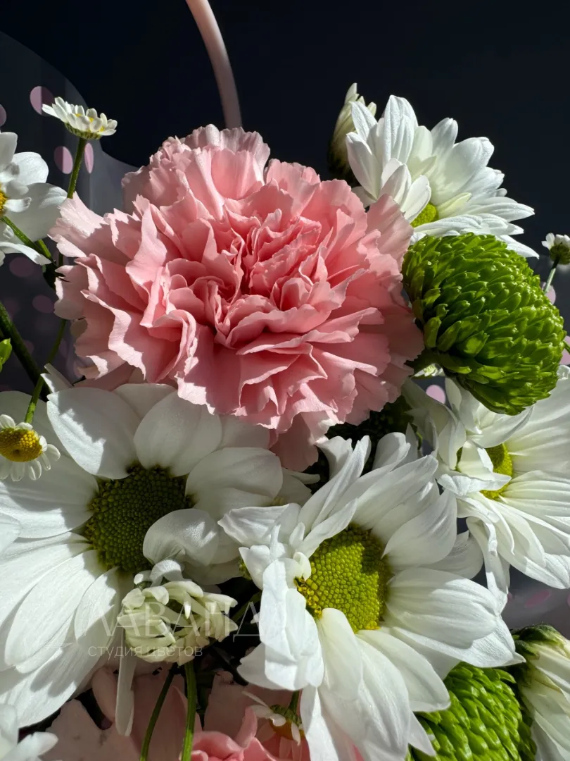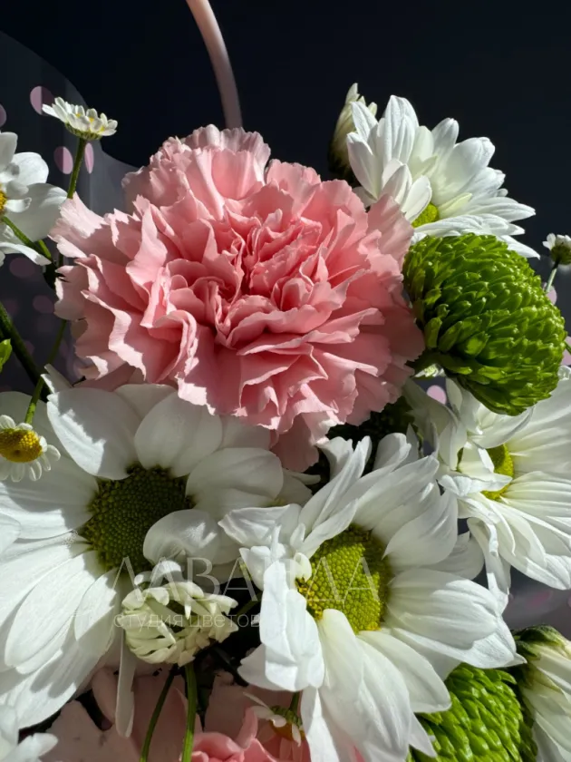 Композиция из хризантем и гвоздик «Летний луг»