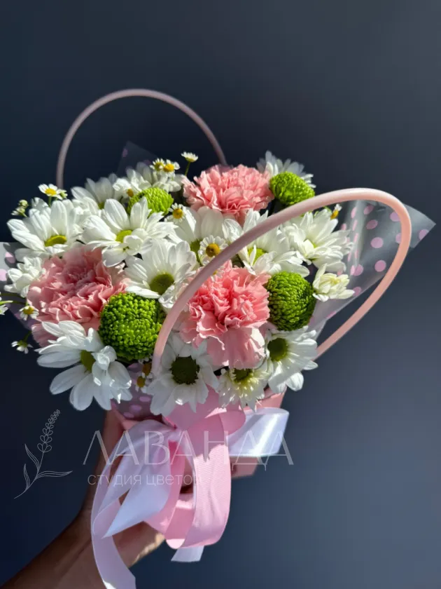 Букет «Летний луг» — это яркая и живописная композиция, воплощающая атмосферу теплого летнего дня. В его состав входят нежные диантусы, создающие ощущение лёгкости и воздушности. Кустовая хризантема добавляет насыщенности и пышности, делая букет более объемным и выразительным. Танацетум вносит нотки свежести и необычности, подчеркивая природную красоту композиции. Такая смесь цветов словно переносит в цветущий луг, насыщенный разнообразием и яркими красками.