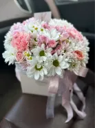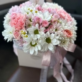 Композиция «Нежность» создана для тех, кто ценит утонченную красоту и изящество. В её составе сочетаются кустовые розы, которые добавляют мягкости и романтичности. Кустовые хризантемы привносят объем и выразительность. Альстромерия добавляет изящной грации своей стройной формой и яркими цветами. Диантусы дополняют букет нежными оттенками и насыщенной текстурой. Танацетум вносит свежести и яркости, делая композицию одухотворенной и живой.