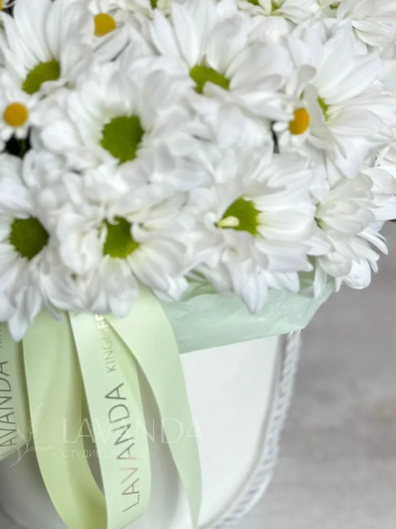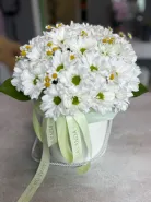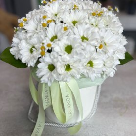 Букет цветов в коробке «Фиалка» — это элегантное и изысканное украшение любого интерьера. В состав букета входят красивые кустовые хризантемы, которые придают композиции объем . Также в букет добавлен Танацетум, который раскрывается нежными оттенками. Коробка придает цветам особый стиль и защищает их от повреждений. Такой букет отлично подойдет в качестве подарка на любой праздник или просто для украшения дома.