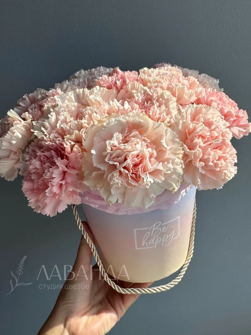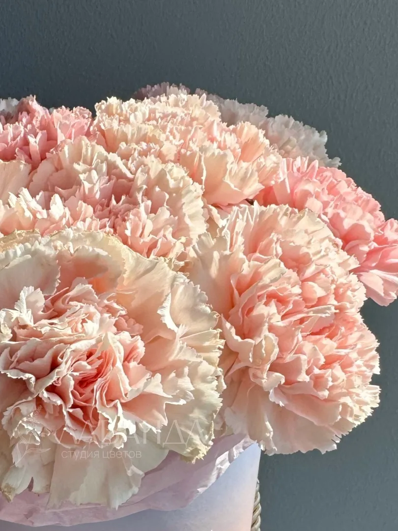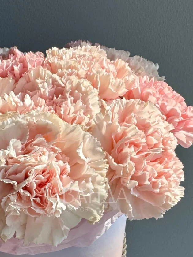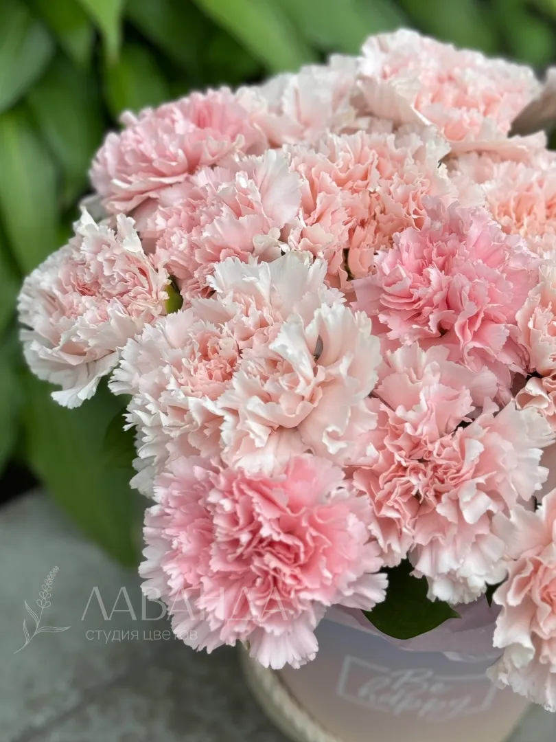 Цветы в коробке из диантусов «Изабель»