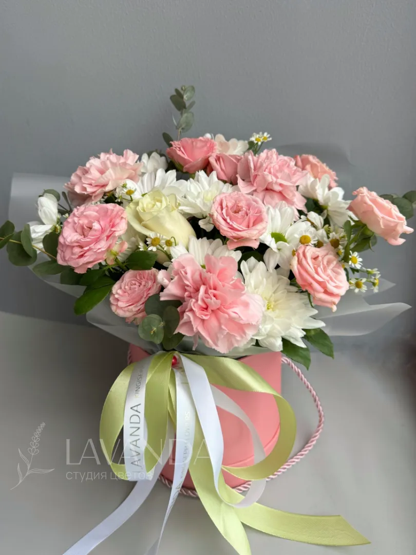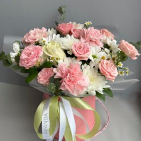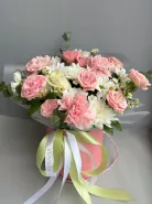 Побалуйте себя или близких изысканной композицией «Сладкое утро», которая наполняет любой день ароматом свежести и тепла. В её составе — роскошные кустовые хризантема, яркий диантус, элегантные кустовые розы и эквадорская роза, придающие гармонию и насыщенность. Нежный Танацетум и освежающий эвкалипт создают уникальную атмосферу уюта и вдумчивости. Эта композиция идеально подойдет для любого праздника или просто, чтобы сделать день особенным.