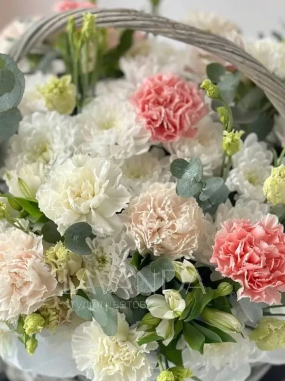 Композиция в корзине «Самой нежной» — это изысканное сочетание цветов, которое подчеркнет особое настроение. В основе букета расположены красивые кустовые хризантемы, создающие объем и мягкость. Диантусы добавляют яркости и деликатности, делая композицию более трогательной. Эвкалипт доверительно подчеркнет свежесть и аромат, создавая атмосферу умиротворения. Лизиантус вносит нотки нежности и изящества, дополняя общий образ. Альстромерия придает композиции элегантность и стилевое завершение. Каждая ветка и цвет тщательно подобраны для гармоничного сочетания. Композиция идеально подойдет в качестве презента или украшения для особого случая. Она создана с любовью и вниманием к деталям, чтобы радовать recipient’а. Этот букет станет символом нежности и искренних чувств.