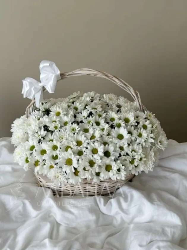 Цветы в корзине из хризантемы « Ромашковое утро»