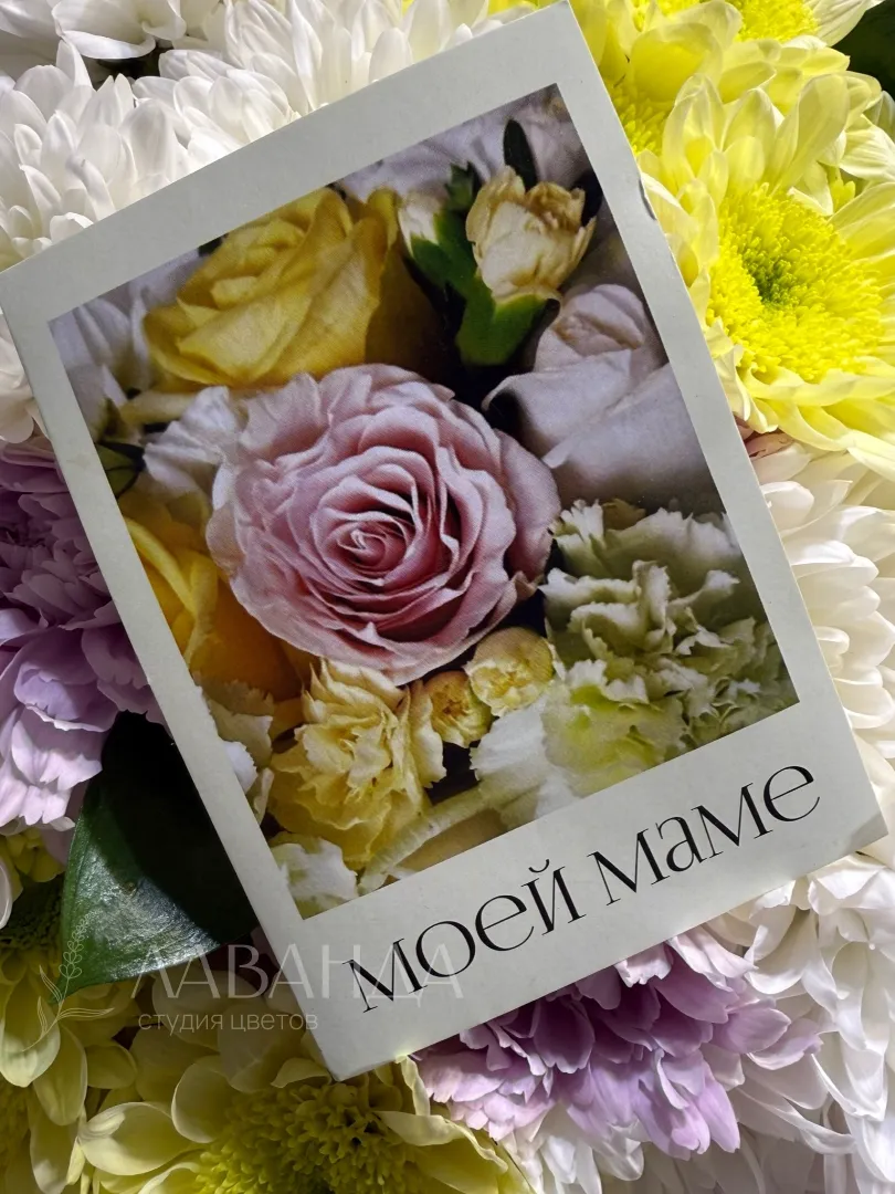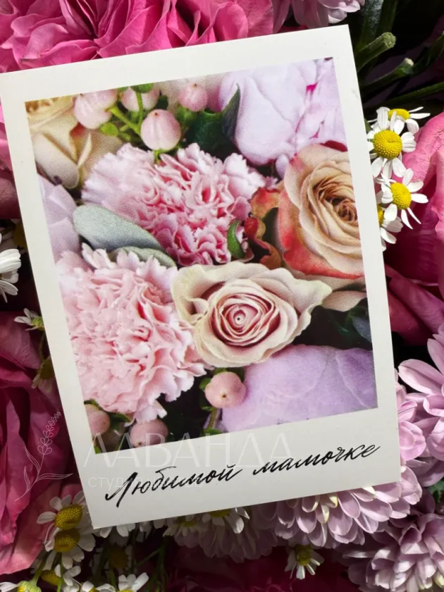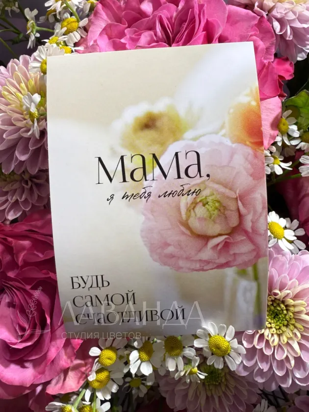 Мини открыточка будет прекрасным дополнением к букету.