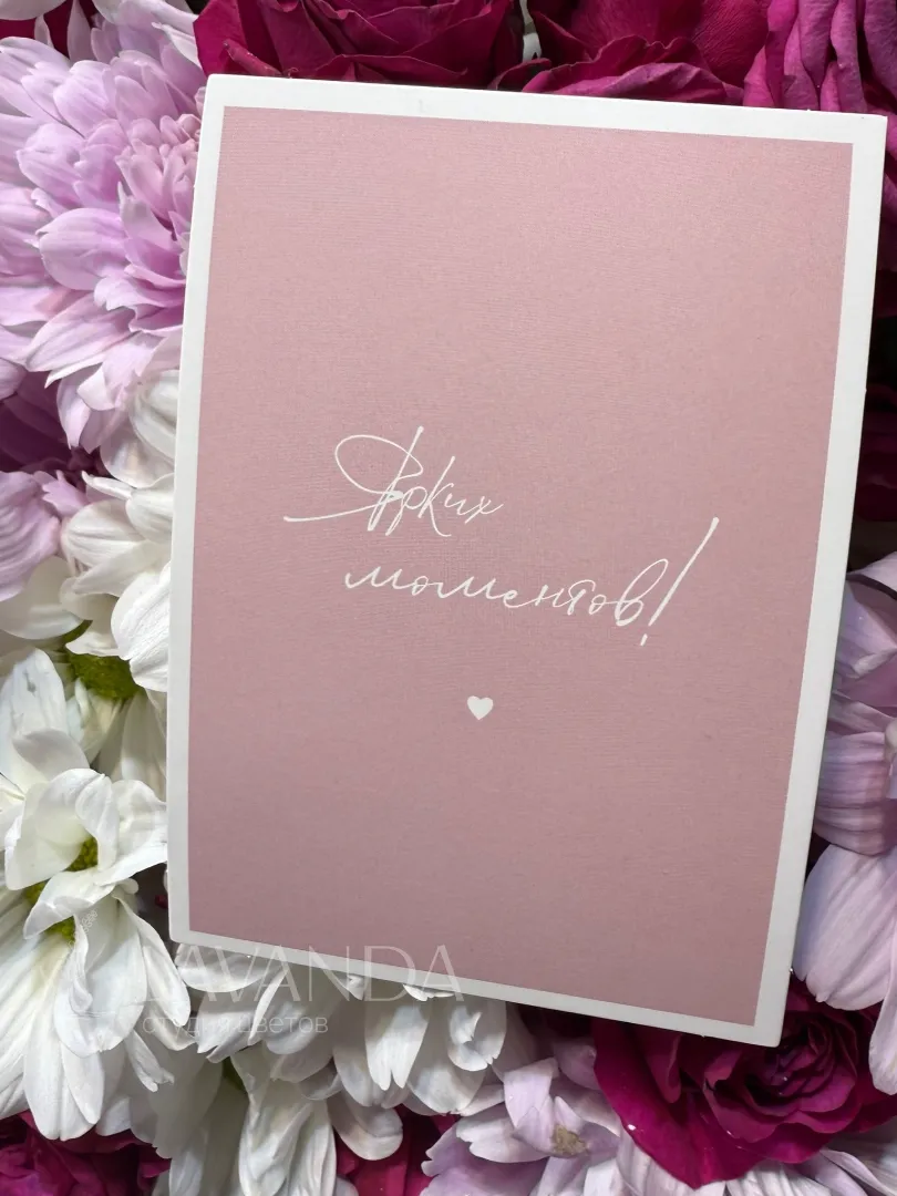 Мини открыточка будет прекрасным дополнением к букету.