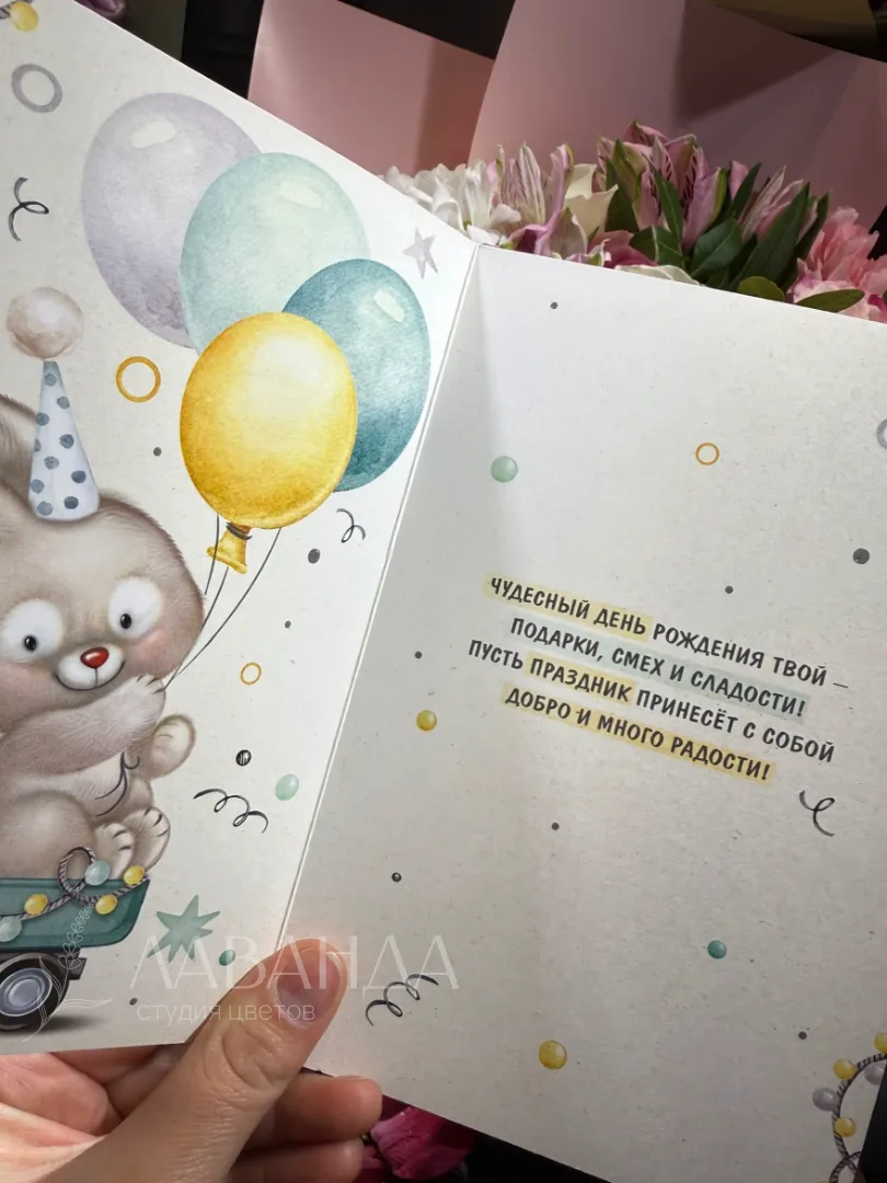 Открытка будет прекрасным дополнением к букету.