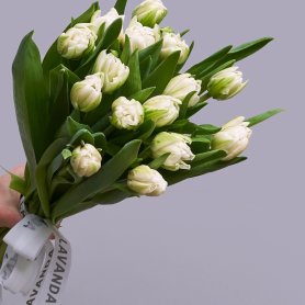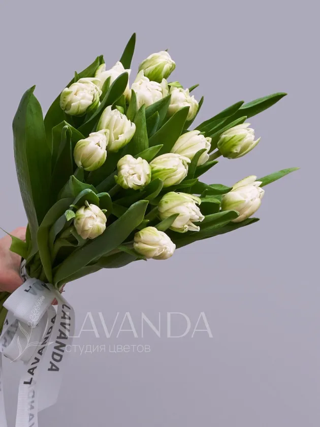 Букет из пионовидных тюльпанов. Белые пионовидные тюльпаны идеально подойдут для утонченных девушек. Тюльпаны под ленту.