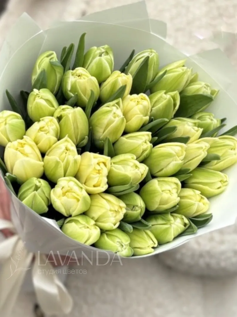 35 пионовидных тюльпанов сливочного цвета