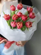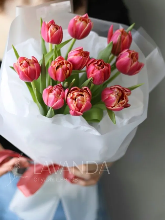 Букет упакован в стильной матовой упаковке, которая придает букету изысканность.