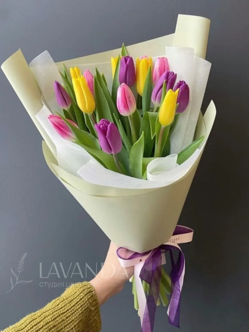 15 тюльпанов микс в упаковке