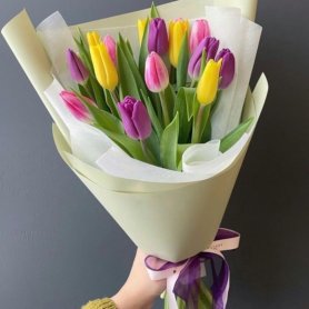Букет из разноцветных тюльпанов в стильной упаковке идеальный вариант для подарка на международный женский день. Вариант данного букета подчеркивает яркость праздника и наступление весны. Букет из тюльпанов понравится вашей маме и бабушке.Доставка в Кингисепп и Усть лугу.
