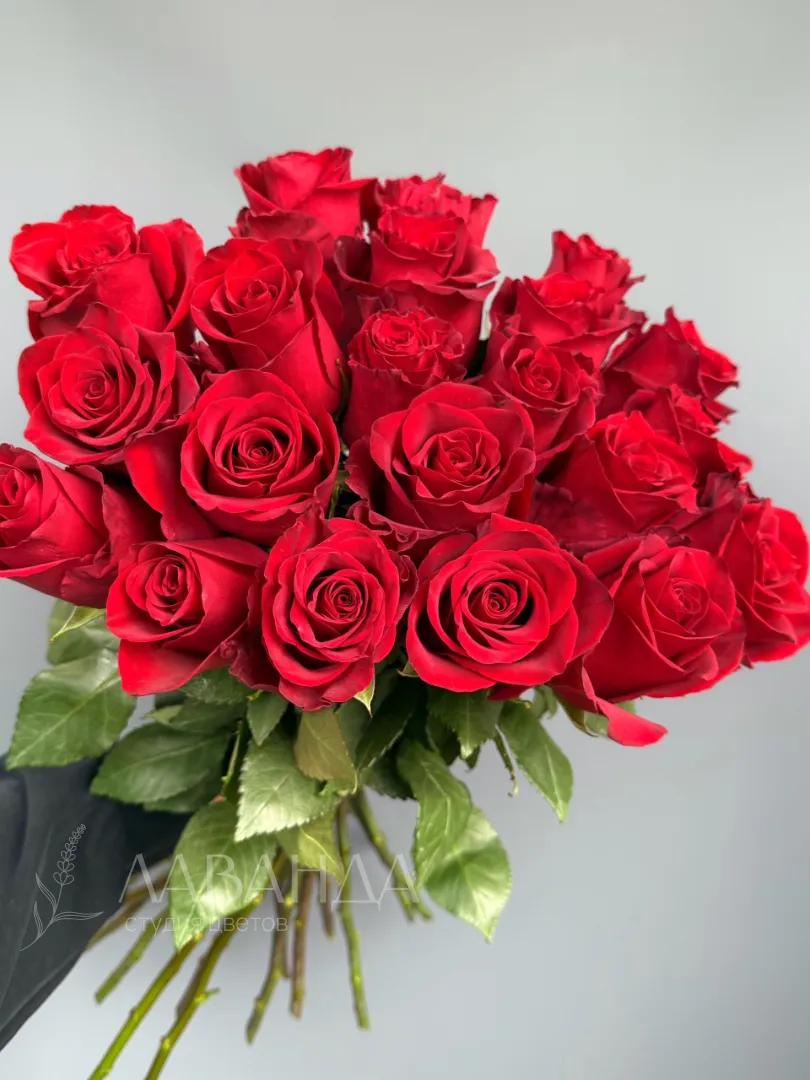 Букет из 23 красных роз под ленту. Классический букет для любимого человека